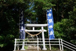 中間公民館隣の石段をのぼり、二つの鳥居を抜けた先に中間神社があります。